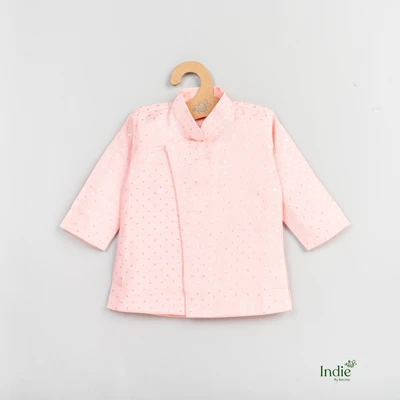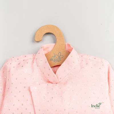 Peach Silk Metallic Tissue Kurta With Dhoti