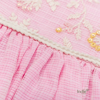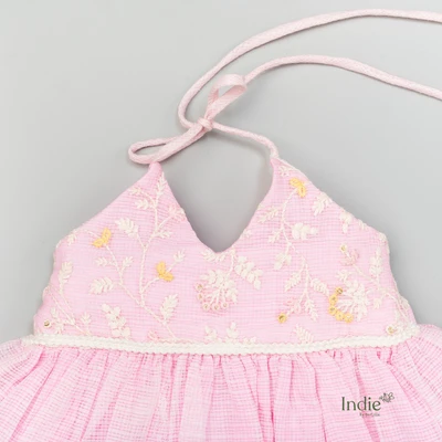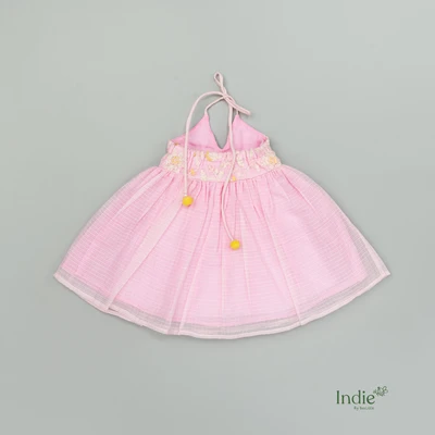Baby Pink Kota Doria Alter Neck Frock