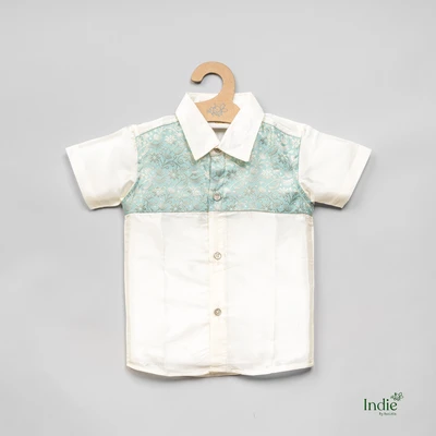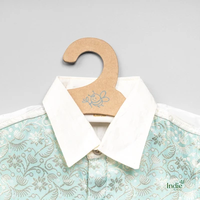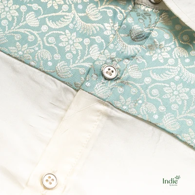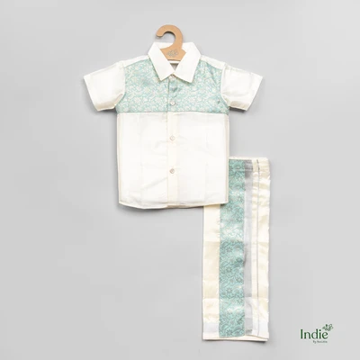 Banaras Patched Teal Shirt And Dhoti