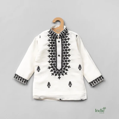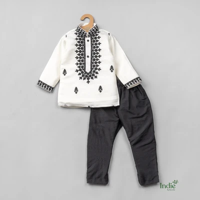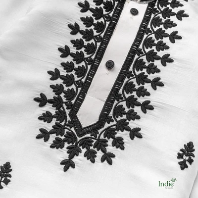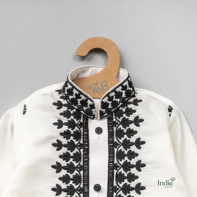 Black Embroidered White Kurta With Pant