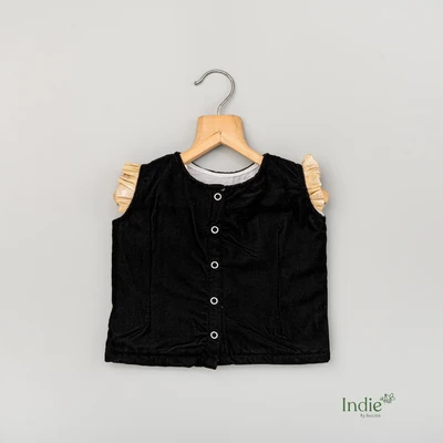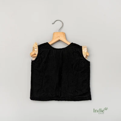 Black Velvet Top And Golden Embroidered Beige Skirt Choli