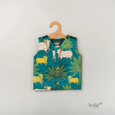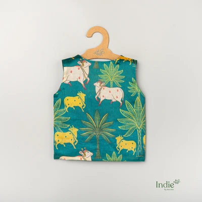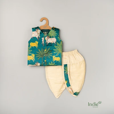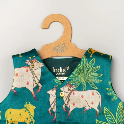 Bottle Green Pitchwai V-Neck Jabla And Panjakajam