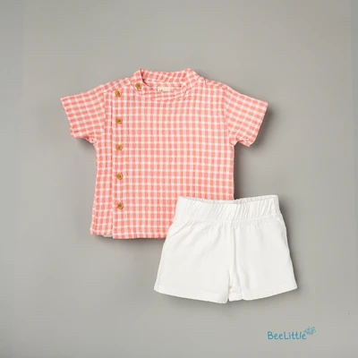 Beelittle side placket shirt and shorts set is a charming and practical outfit. Featuring a distinctive button-down side placket, making it easy to dress your little one. Crafted from soft, breathable fabric, this shirt ensures maximum comfort and freedom of movement. The elastic waistband shorts allow for quick diaper changes, making this versatile set both functional and adorable.