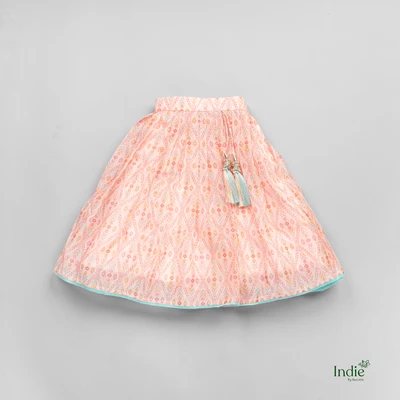 Pink Floral Printed Top And Orange Pleated Lehanga