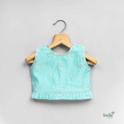 Butta Embroidered Teal Top And Pleated Lehenga With Dupatta