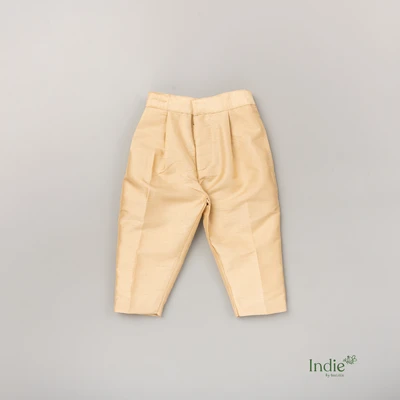 Green Leave Embroidered Gold Kurta With Beige Pant