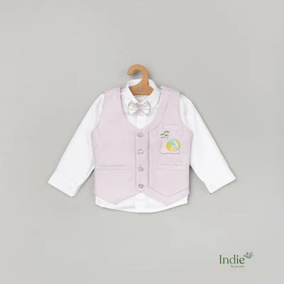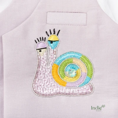 Colourful Snail Hand Embroidered With Bow Lavender Suit Set