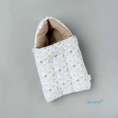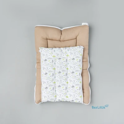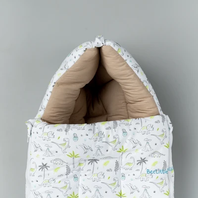 Hooded carry bed for newborn babies with cotton lining and hypoallergenic polyfibre filling. With allover print in outer surface and solid inner, you little one can be tucked in using zipper fastening. Can alternatively laid as mattress.