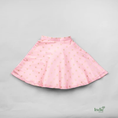 Red Top And Golden Embroidered Pastel Pink Skirt Choli