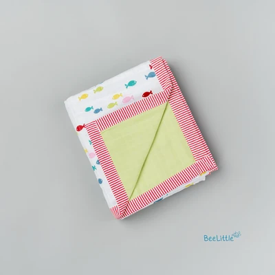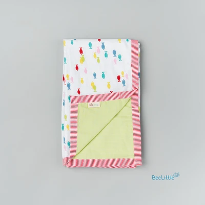 Thick layered blanket in soft woven pure cotton muslin, has cute and quirky all over prints on both the sides. Multi-functional blankets comes with folded trim, reversible design details and insulates temperature.