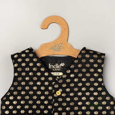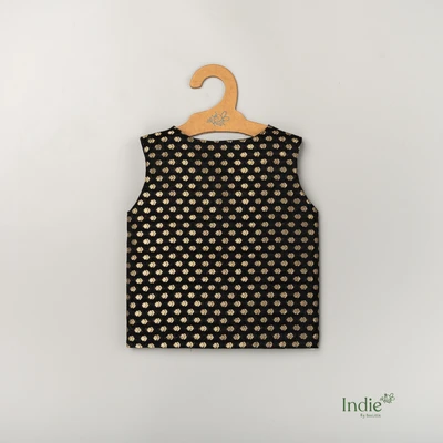 Golden Butta With Black Banaras V-Neck Jabla And Panjakajam