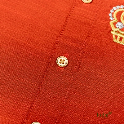 Golden Crown with Gems Embroidered Cadmium Red Shirt