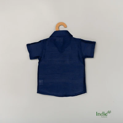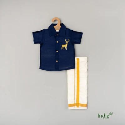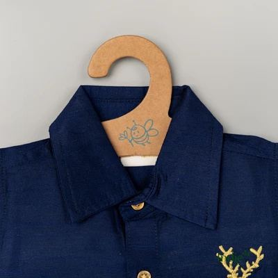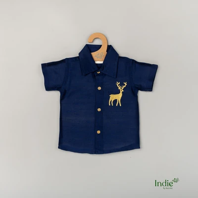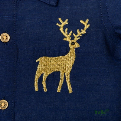 Golden Deer Embroidered Navy Blue Shirt