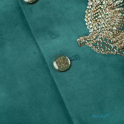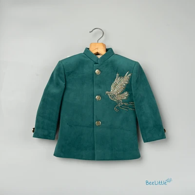 Golden Falcon Bird Embroided Green Kurta With Sandal Pant