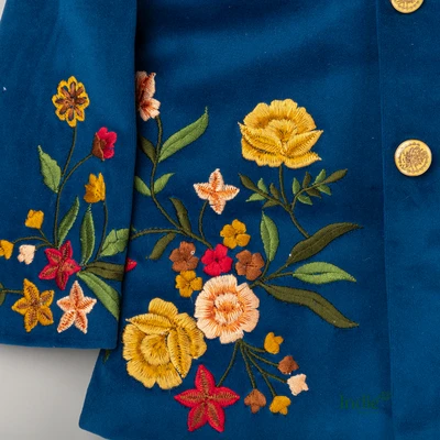 Multicolour Floral Embroidered Blue Kurta With Beige Pant