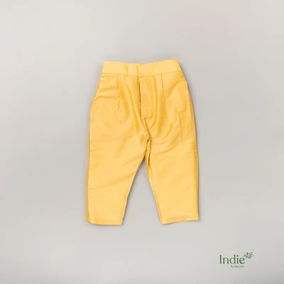 Green Leave Embroidered Gold Kurta With Beige Pant