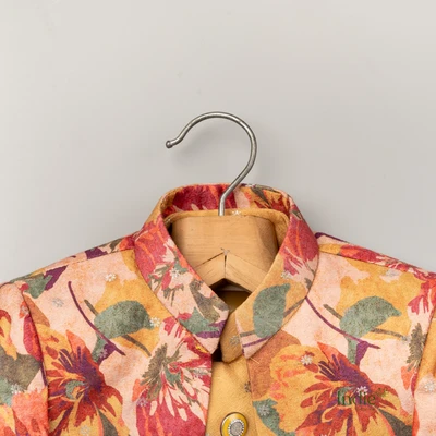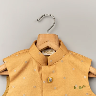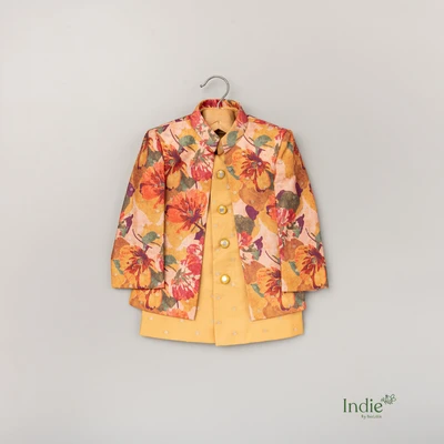 Golden Floral Printed Jacket With Scandal Kurta With Pant