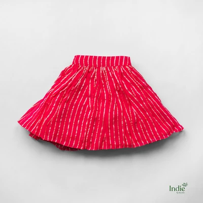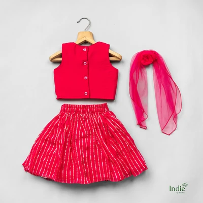 Golden Lace Printed Dark Pink Crop Top And Skirt With Dupatta