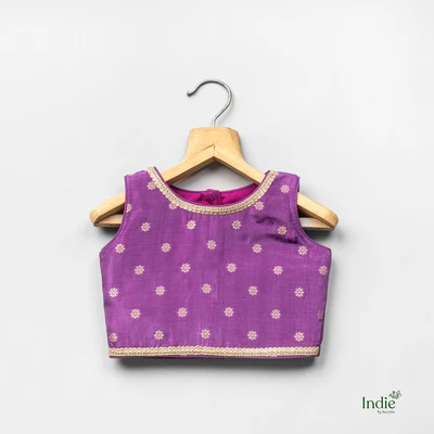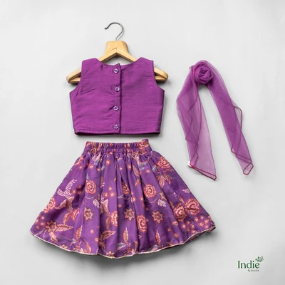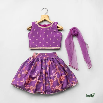 Golden Lace Printed Dark Pink Crop Top And Skirt With Dupatta