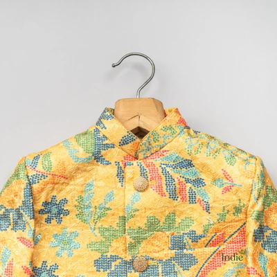 Golden Floral Printed Jacket With Scandal Kurta With Pant