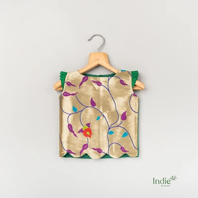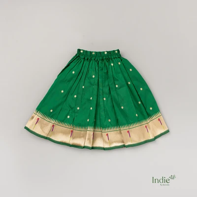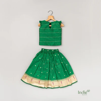 Green Paithani Scalloped Top And Skirt