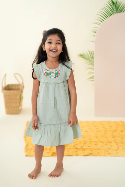What's a baby outfit without a touch of adorable flair? Our woven frill frock comes adorned with charming frills, adding a whimsical charm that's simply irresistible. Whether it's a special occasion or a casual day out, this frock promises to make every moment as precious and adorable as your little one.