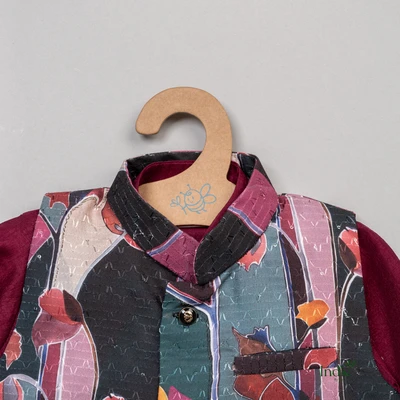 Magenta Kurta With Multifloral Printed Jacket And Pant