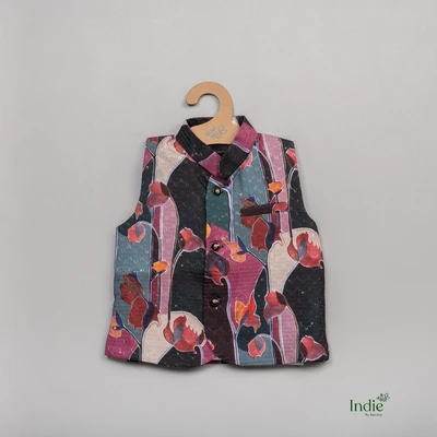 Navy blue Kurta With Multifloral Printed Jacket and Pant