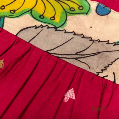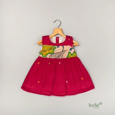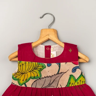 Maroon Butta Jamdani With Kalamkari Yoke Frock