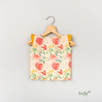 Orange Kanchi Cotton Scalloped Top And Skirt