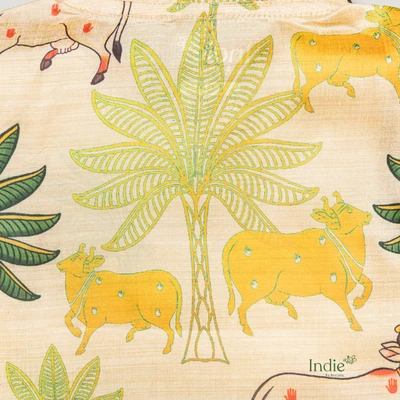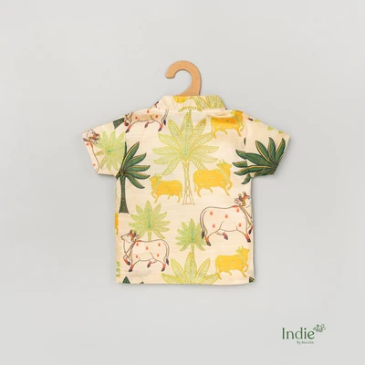 Yellow Pichwai Side Placket Shirt With Sandal Shorts