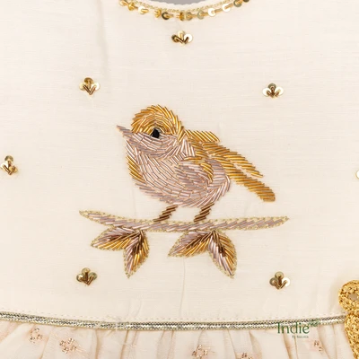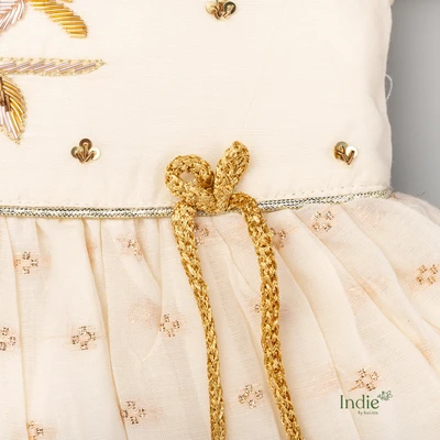 Off-White Golden Bird Emberoided Cap Sleeve Tie Up Frock