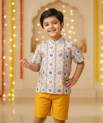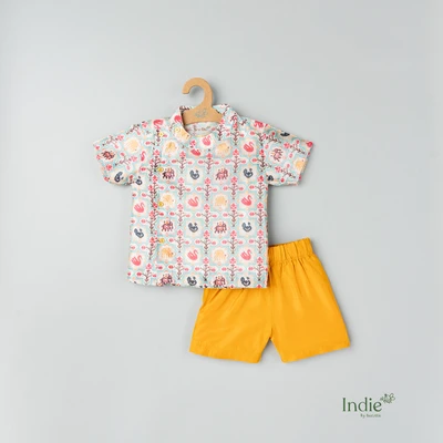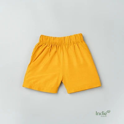 Yellow Pichwai Side Placket Shirt With Sandal Shorts