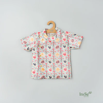 Teal Pichwai Side Placket Shirt And Shorts