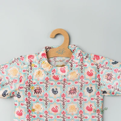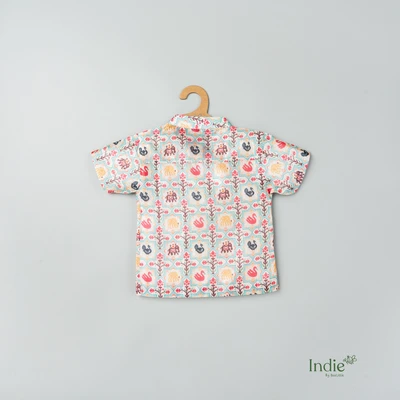 Off White Pichwai Side Placket Shirt And Shorts
