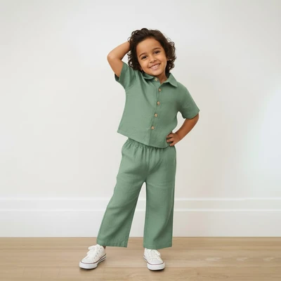 Keep your little one cozy and stylish with this charming Half-sleeve t-shirt and pant set. The set includes a warm, long-sleeve t-shirt that offers a relaxed fit, making it ideal for breezy days. The pants are designed with an elasticated waistband for a secure and comfortable fit, allowing your baby to move freely. Made from high-quality, baby-friendly materials, this set is gentle on your baby's delicate skin, ensuring comfort throughout the day. Whether at home or out and about, this t-shirt and pant set is a practical and fashionable addition to your baby's wardrobe.