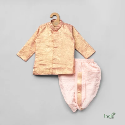 Peach Silk Metallic Tissue Kurta With Dhoti