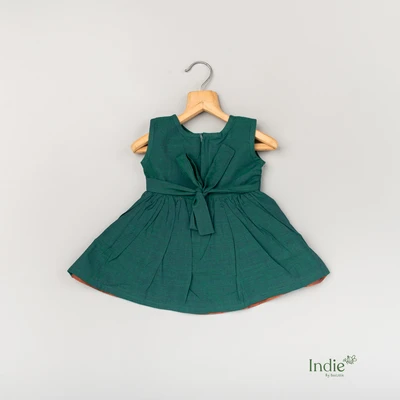 Pink Floral Bird Emberoided Multi Green Sleeveless Tie-Up Frock