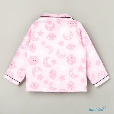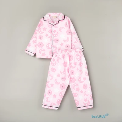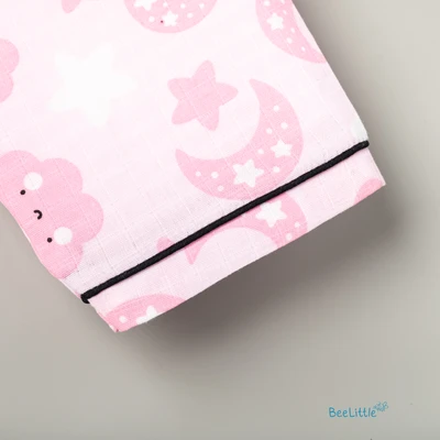 Our Pyjama sets offer comfort and style for your little one's restful night's sleep. Each set includes a short-sleeve button-up top with a classic collar and chest pocket, finished with contrasting piping. The matching pants feature an elastic waistband and piped cuffs. Made from soft, breathable fabric, they are gentle on baby's skin and are perfect for year-round wear.