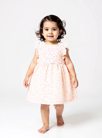 What's a baby outfit without a touch of adorable flair? Our woven frill frock comes adorned with charming frills, adding a whimsical charm that's simply irresistible. Whether it's a special occasion or a casual day out, this frock promises to make every moment as precious and adorable as your little one.