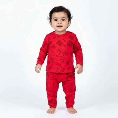 Our Pyjama sets offer comfort and style for your little one's restful night's sleep. Each set includes a short-sleeve button-up top with a classic collar and chest pocket, finished with contrasting piping. The matching pants feature an elastic waistband and piped cuffs. Made from soft, breathable fabric, they are gentle on baby's skin and are perfect for year-round wear.
