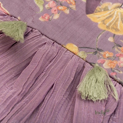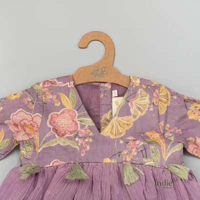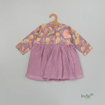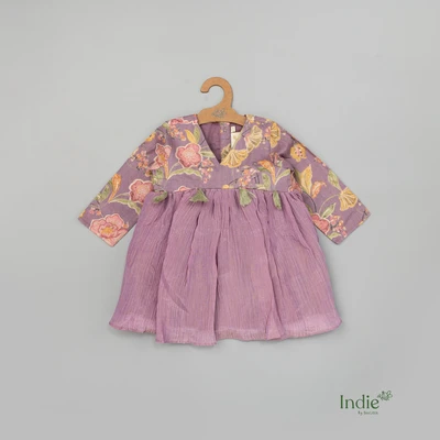 Purple Floral Crushed Tissue Frock With Full Sleeve