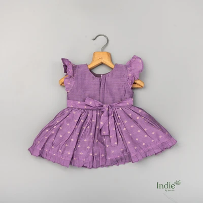 Purple Floral Emberoided Cap Sleeve Tie Up Frock