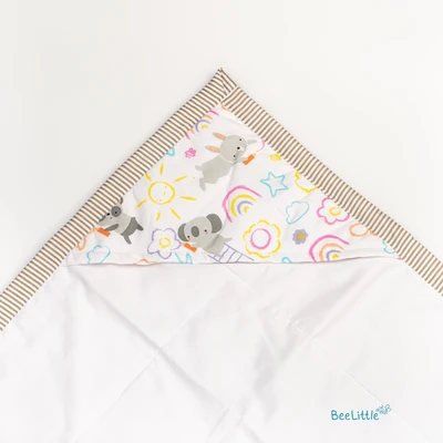 Wrap your newborn in the softest and gentlest of cotton with this comforting wrap bed. Its all-over printed outer surface and hooded top create a soothing and nurturing environment, curated with 12 layers of organic cotton to provide the ultimate comfort for your little one. Give your baby the warmth and security they need to feel loved and cherished as they explore the world.