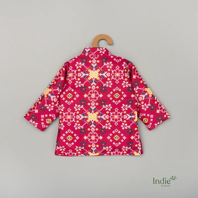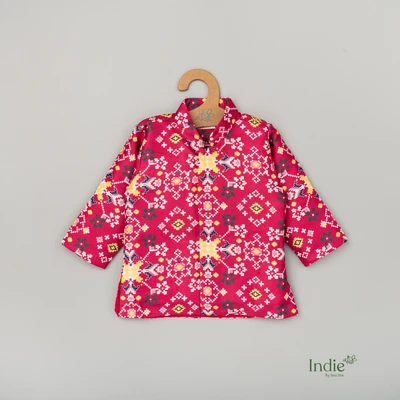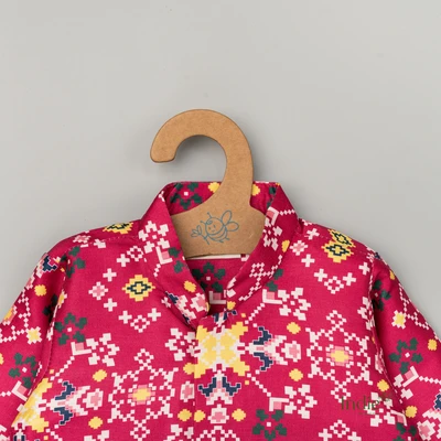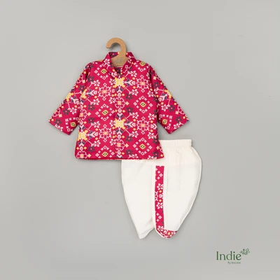Rani Pink Printed Short Kurta With Dhoti