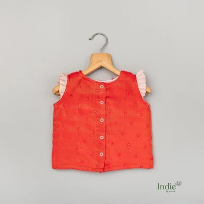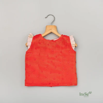 Red Top And Golden Embroidered Pastel Pink Skirt Choli
