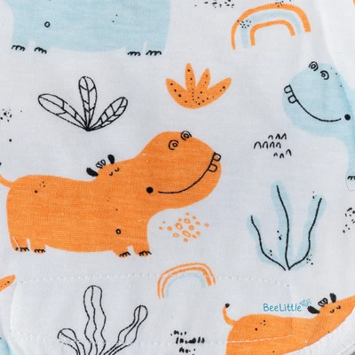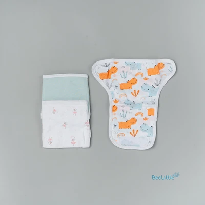 Pack of Three reusable knitted nappies with velcro closure, made from organic cotton. Finely sewn side seams prevent rashes and irritation. Safe, vibrant prints. Soft on the baby's skin. Durable and eco-friendly material.