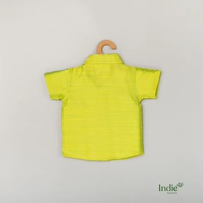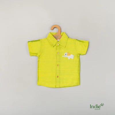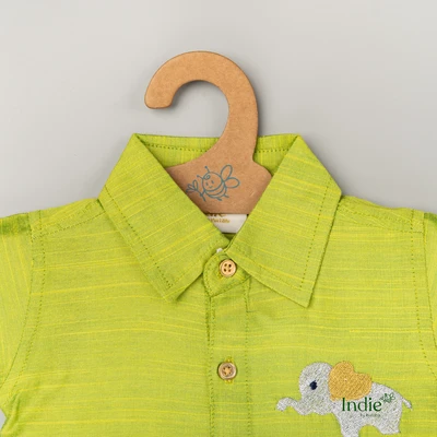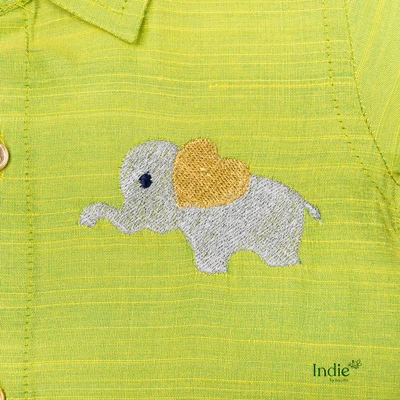 Silver Elephant with Golden Heart Embroidered Green Volt Shirt