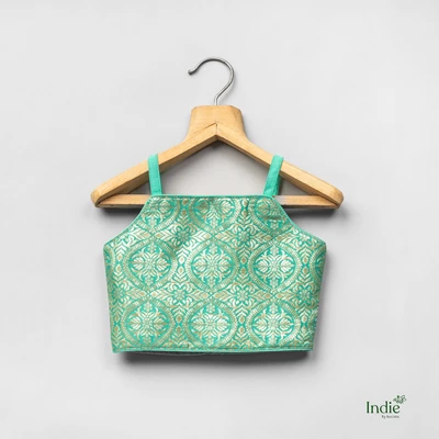Silver Zari Embroidered Green Crop Top And Skirt With Dupatta