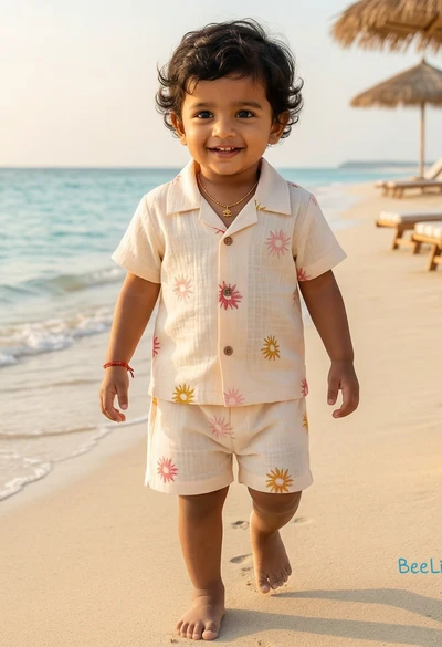 Elevate your little one's style for any occasion with Beelittle's charming Co-ord sets! Crafted with care from pure organic cotton, these top and bottom sets offer both breathability and softness, ensuring your child's comfort all day long. Whether it's a special day or a casual evening stroll, these Co-ords add a touch of sophistication to your tiny tot.